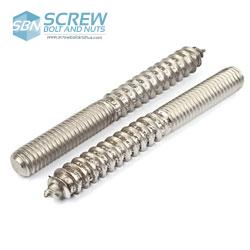 Hanger bolts are studs used to attach specific Object or connect items to such as woods or Sheet Steel. Like a normal stud, they are headless, double-ended bolts that have threads at each end—lag threads to screw into wood but, at the other end, machine screw threads to accept a nut or thread into an internally threaded hole. Coupling nuts and threaded rod are often used with hanger bolts to attach electrical duct, sheet steel and machinery.