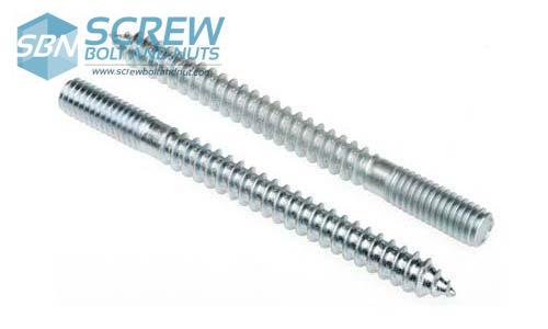Hanger bolts are studs used to attach specific Object or connect items to such as woods or Sheet Steel. Like a normal stud, they are headless, double-ended bolts that have threads at each end—lag threads to screw into wood but, at the other end, machine screw threads to accept a nut or thread into an internally threaded hole. Coupling nuts and threaded rod are often used with hanger bolts to attach electrical duct, sheet steel and machinery.